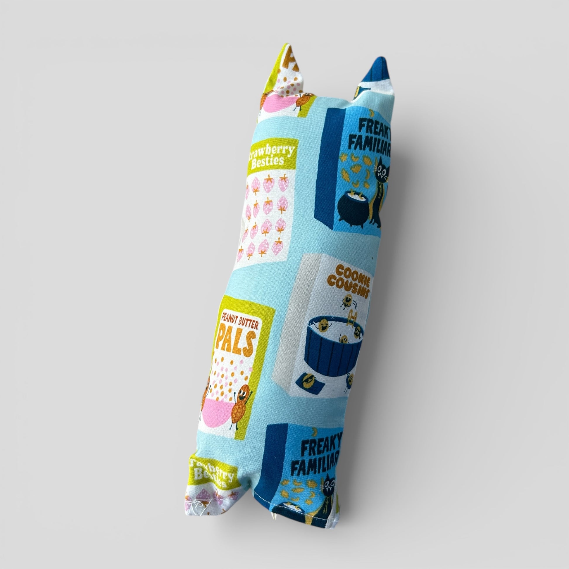Handmade jumbo cat ear kicker designed for endless feline fun. Crafted with care, this oversized toy features a modern, durable fabric body stuffed with potent catnip to entice even the laziest of cats, plus a built-in crinkle nose for irresistible rustling sounds that spark curiosity and play. Adorned with cute, perky ears for added charm, its jumbo size is perfect for kicking, wrestling, and cuddling. The sturdy construction ensures it withstands vigorous play, making it an irresistible, long-lasting treat for your cat. Handmade with love, this kicker toy brings big fun and a touch of whimsy to your kitty’s day.