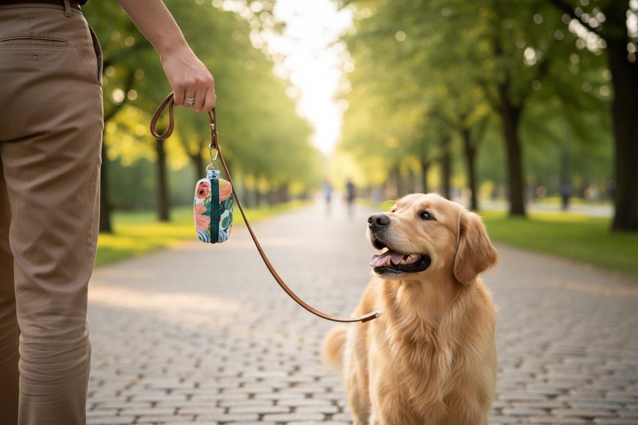 Elevate every walk with timeless elegance: premium dog poop bag holder in authentic Rifle Paper Co.-style floral fabrics — hand-painted whimsical prints for stylish pet parents who love beautiful details.